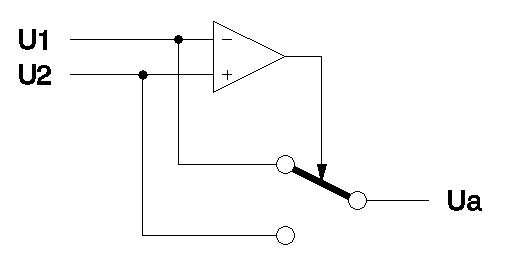 Hallo Michael, als einfachste Lösung fällt mir ein, ein Komparator, der einen Analogschalter steuert (s. Bild). Gruß, WIRO