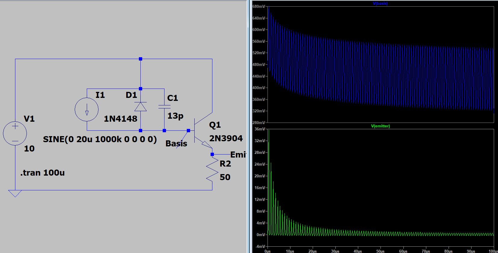 400pF kommen mir zwar irgendwie viel vor für die Diode, aber nehmen wir es erst mal so hin.. Danke! Wenn tatsächlich die Eingangsimpedanz des Transistors das Problem ist, dann sollte eine Kaskodestufe ja etwas bringen.