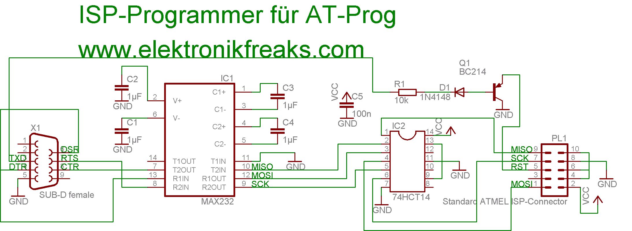 Hallo Hab ein kleines Problem mit dem Übertragen der Hex-Datei. Ich wollte eigentlich PonyPorg2000 verwenden mit einem DT-006 ISP-Programmer, aber das Funktioniert auf meinem Laptop (Toshiba Satellite Pro 4360) nicht. Auf meinem alten Laptop (Compaq Armada 3500) funktioniert es wunderbar. Ich vermute, dass PonyProg die Parallel-Port nicht richtig ansteuern kann. Im BIOS kann ich auswählen zwischen "Standard Bi Directional" und "ECP" was soll ich da einstellen? Ich habe mal gelesen, dass Druckertreiber den PP blockieren, hab den Drucker deshalb deinstalliert, funktioniert aber immer noch nicht. Ich verwende jetzt AT-Prog von http://www.speedy-bl.com/avr-prog.htm das funktioniert auch,(Der Schaltplan des Programmers ist im Anhang) nur kann ich da die Fusebits nicht einstellen. Habe einen 16 MHz Quarz angeschlossen, den ich jetzt noch aktivieren muss, weiss aber nicht wie? Danke euch jetzt schon, wenn ihr mir helfen könnt.