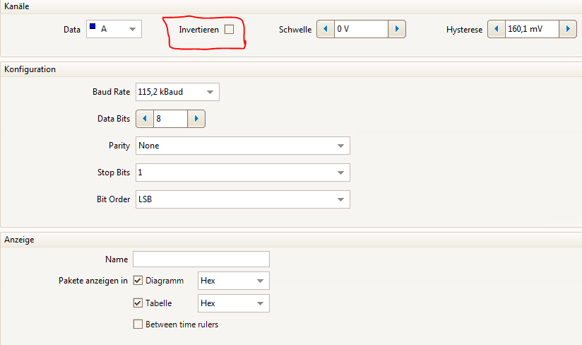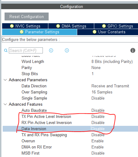 Hallo zus. ich möchte Daten von MicroAutoBox an STM32F7 µC senden. Leider kommen keine Daten an den µC, jedoch vom USB-Serial-Port kommen die Daten an den µC. Dann habe ich das Tx-Pin vom MicroautoBox an Oszi angeschlossen. Die Daten werden mit dem Oszi richtig angezeigt, aber nur wenn ich in der Picoscope-Konfiguration invertieren markiere(Siehe Abb.). nun wollte ich fragen, was die Data Inversion im Cubemx bedeutet(siehe Abb) ? Danke im Voraus