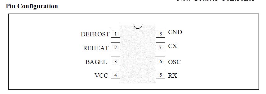 Hallo, ich habe ich eine Platine (einseitig) aus einem Toaster. Die Steuerung der Röstzeit übernimmt ein Chinesischer „Toaster-Controller“ Ich frage mich gerade, ob die Asiaten wirklich für disen Anwendungszweck (als Toaster-Steuerung) eine eigene Hardware gebaut haben, oder ob sich dahinter vielleicht doch nur eine gängige Standard-MCU wie PIC12 oder AT-Tiny verbirgt. Dann hätten die Jungs nur den Chip neu gelabelt. Allerdings liegt VCC an Pin 4 (5V) und GND an Pin 8. Da finde ich nichts Passendes. Als Toaster-Controller wird der Chip vermarkter von „Cmsemicon“ mit der Bezeichnung „CMS12530“. Scheinbar baugleich mit „PT8A2514A“ von „PERICOM“. Bei mir ist kein DIP8 sondern ein SMD-Gehäuse in Verwendung. Pin-Out und das vermeintliche Blockbild anbei. Toast