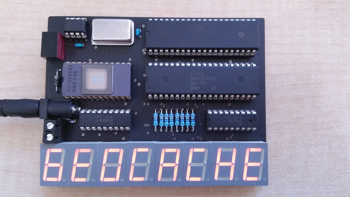 Es könnte Intel-HEX sein. Das die obige Schaltung CP/M realisiert ist auch unwahrscheinlich. Es ist sicherlich nur ein einfaches Z80 Programm auf obiger Hardware. LL AAAA TT DATA---------------------------- SS 10 0000 00 3E0FD302D30318287036737A7D74360F EF 10 0010 00 6D682D2A632C606E4C74C1549A701919 46 10 0020 00 5927ED78A358494A111674D277505110 C8 10 0030 00 1100020E0179D3012108007EADD30006 24 10 0040 00 8010FE23AF79174FD30130EF1BAFBB20 D9 10 0050 00 E2BA20DF1100020E0179D3012110007E E7 10 0060 00 ADD300068010FE23AF79174FD30130EF D8 10 0070 00 1BAFBB20E2BA20DF1100020E0179D301 D1 10 0080 00 2118007EADD300068010FE23AF79174F F4 10 0090 00 D30130EF1BAFBB20E2BA20DF1100020E 0C 10 00A0 00 0179D3012120007EADD300068010FE23 0C 10 00B0 00 AF79174FD30130EF1BAFBB20E2BA20DF 7F 10 00C0 00 1100020E0179D3012128007EADD30006 74 10 00D0 00 8010FE23AF79174FD30130EF1BAFBB20 49 10 00E0 00 E2BA20DF110002189200000000000000 B8 10 0100 00 783F7971717938000000000000000000 2C 10 0110 00 7D793F39773976790000000000000000 D2 10 0120 00 546DDB4F865B6D3F0000000000000000 57 10 0130 00 7906CF5BE66D7D6D0000000000000000 D9 08 0140 00 393F5EF93F7F066D B7 00 0000 01 FF