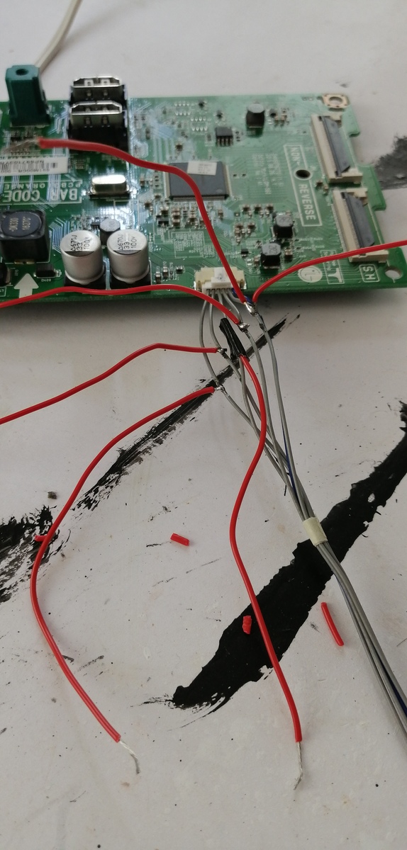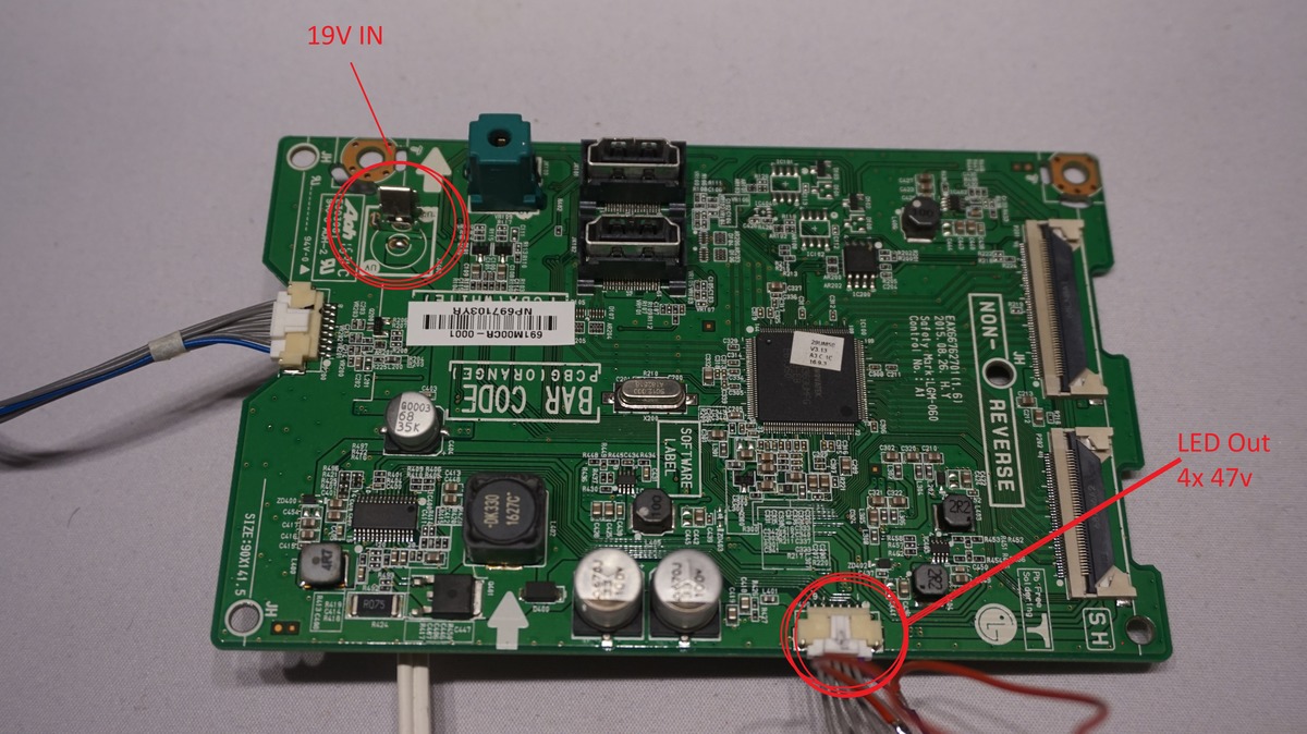 Danke schon mal für die Antworten :) Heinz schrieb: > Nimm ein Netzteil und speise die LEDs des Backlight direkt damit Das ist eine gute Idee... Ich habe es mal eben gemessen. Leider kommen von der Platine zu den LED,s 6 Kabel, ich habe mit meinem Voltmeter mal abgecheckt was da so rauskommt und bekomme an manchen Pins 47 Volt und bei anderen irgendwas im Millivoltbereich, bin jetzt etwas verwirrt wo ich dort ein Netzteil anschließen soll.. ? Ich denke das ist von Modell zu Modell unterschiedlich und die Frage ist nicht zu beantworten aber vielleicht hat ja doch noch einer eine Idee. (Die roten Kabel auf dem Bild habe ich angelötet um mein Voltmeter anzuschließen)
