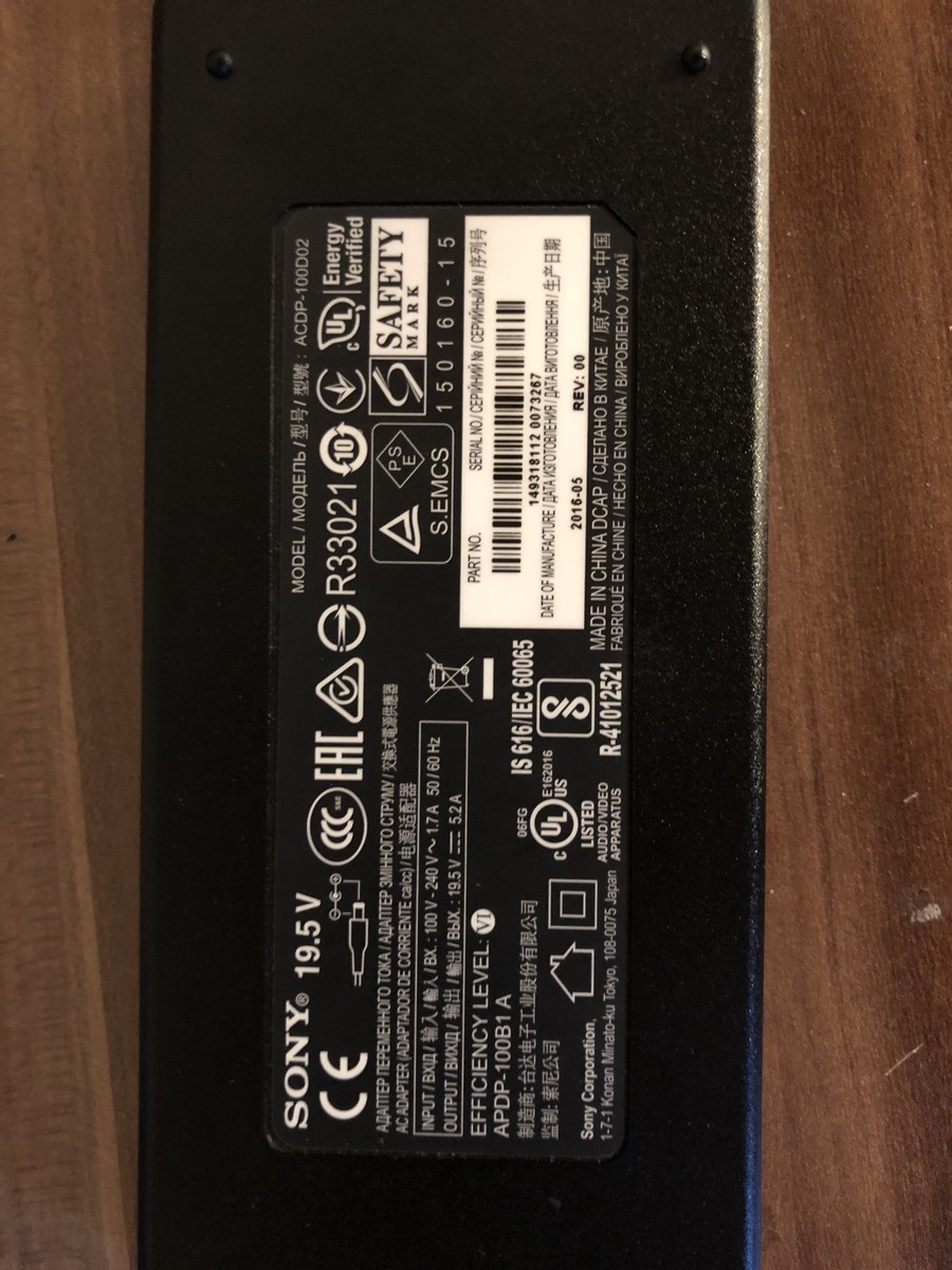 Der Glotze ist es egal, ob der Strom aus einem Netzteil kommt wo Sony oder was anderes draufsteht.... 19,5V sieht nach Zweitverwertung Notebook-Netzteil aus. https://www.ebay.de/itm/Original-Dell-130-Watt-Netzteil-Laptop-Ladegerat-DA130PE1-00-19-5V-6-7A/123847128732?epid=1907907173&hash=item1cd5dd369c:g:Ox8AAOSwIbJdJHuS