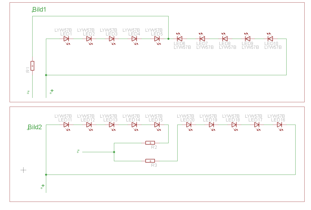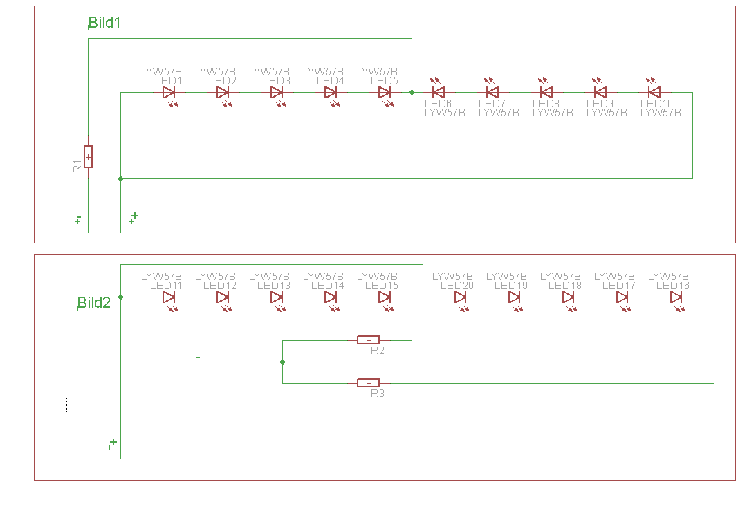 Hallo, hier kurz zu meinem vorhaben, es sollen 10SMD LEDs an einem Schaltnetzteil mit 12V betrieben werden. Hierzu eine Frage kann man dies, wie im Bild1 verschalten oder sollte man es lieber wie in Bild2 verschalten? Falls man es, wie im Bild1 verschalten könnte, wie müsste man dafür den Widerstand berechnen?