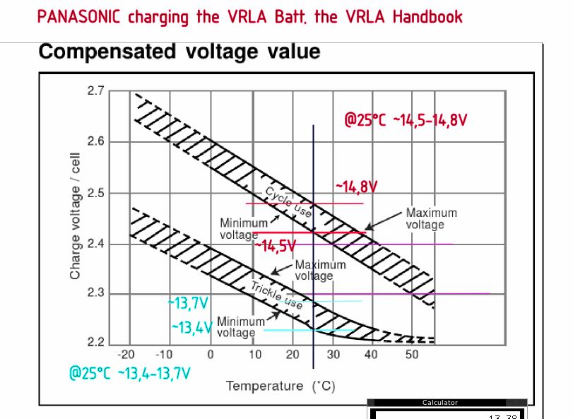 Steffen D. schrieb: > Eine Frage zum Ladestrom einer AGM Batterie, ich habe hier einen AGM > Akku aus einer USV, 4 Jahre alt und damit ausgemustert. Der Akku hat 12V > und 64Ah. Wenn ich den Akku an einem Labornetzteil lade geht der > Ladestrom nicht unter 0,9A runter. Das ganze bei 14,4V > Spannungsbegrenzung. Ich habe früher genau den selben Akku Typ gehabt > und bei dem ging der Ladestrom immer weiter zurück bis auf ca. 0,3A. > Dann habe ich die Ladung beendet. > > Frage: Ist da etwas faul mit dem "neuen" Akku? Sollte ich die Ladung > beenden oder noch was weiß ich wie viele Stunden weiter laden um zu > schauen ob der Strom doch noch runter geht? > Sonst ist der Akku unauffällig, Kapazität ist okay. Ist ja nicht neu :/ Liegen angeschlossen am Netzteil gemessen an den klemmen auch auch deine 14,4V an oder ist das weniger und dein Labornetzgerät ist evtl. in der Strombegrenzung wil es ihm vlt. zu warm wurde. Ein Bleiakkumulator gleich welcher Bauart ist dann geladen wenn sich an einer fixen Spg. über einen mehrstündigen Zeitraum keine Änderung im Strom mehr zeigt, mehr geht halt nicht. Dann trennt man ihn vom Lader. simple as that. Mach einen Belastungstest, lass ihn stehen mess die Klemmspannung offen und wiederhole das Ganze. Und die Ladeschlusspannung wurde immer noch nicht erfunden, halt erfunden schon gefunden hat man sie aber nicht. Nuckelladen mit 13,9 oder irgendwas anderem zwischen drin dauert halt ewig und drei Tage, wenig geeignet um zu sehen was man da vor sich hat. rtf panasonic books ;)