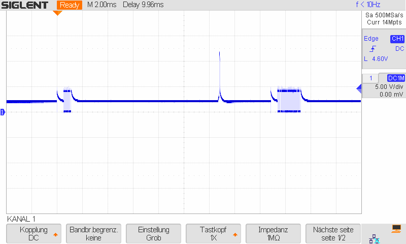 Die Frage stand schon mal an: Beitrag "Attiny1614 UPDI REAKTIVIEREN?!" Ich habe das Oszilloskop bemüht und ein Snapshot gemacht. Der 12V Puls wird gemacht, ist aber sehr schmal.
