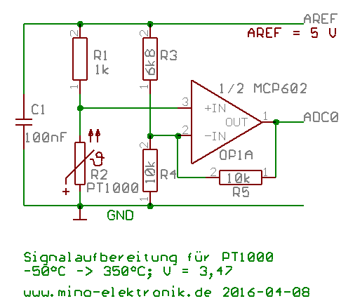 Klaus R. schrieb: > Der Spannungs-Offset des OPV kann 4,5 mV betragen Ja nun, bloss weil RN-Wissen den LM358 und Uhrensohn den MCP6001 gewählt haben, muss man ja nicht bei der ungeschickten Wahl des billigsten und ungenauesten OpAmp bleiben, der schon von sich aus zu Ungenauigkeiten in der Temperaturmessung von +/-15GradC führt. Besser als 100uV ist keine Hexerei, z.B. MCP6V11. L. H. schrieb: > Die "Tabellen-Gläubigkeit" in manchen Beiträgen irritiert mich etwas Wahscheinlich bist du auch kein Freund von Physik, sondern eher Esoterikgläubig. Klaus R. schrieb: > Google mal nach "PT1000 ratiometrisch Warum sollte er, er mitt mit OpAmp und 3.3V schon ratiometrisch. Keine Ahnung warum hier von Ahnungslosen der Pt1000 totgeredet werden soll, der in einem Grossteil der industriellen Temperaturmessungen verwendet wird, eben weil austauschbar und ohne Kalibrierung auf besser als 1 GradC genau. Ja, man muss die Schaltung richtig bauen, das steht aber alles in der http://www.dse-faq.elektronik-kompendium.de/dse-faq.htm#F.32