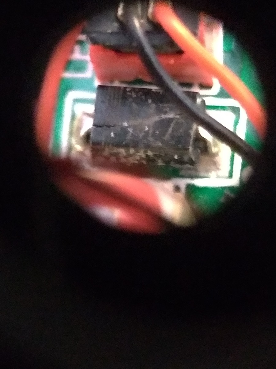 Max D. schrieb: > Die Dioden sind zwar dem Anschein nach kaputt, aber dürften nur die > Induktion beim PWMen des Motors fressen. ...nur... Ohne die Dioden frisst die Gegen Induktion des Motors ganz schnell die Treiberstufe. Das IC daneben sieht nicht richtig toll gelötet aus. So richtig gut lässt sich das aus der Perspektive allerdings nicht erkennen. Hat die Drohne schon mal funktioniert?