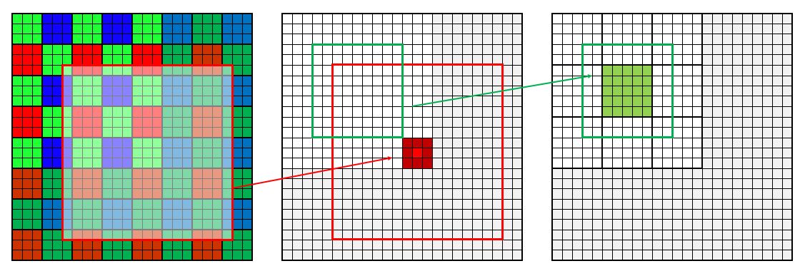 Ich zeichne nochmals auf, was ich meine anhand einer Linie über 3 Pixel: Nehe ich einfach die Pixelwerte aus dem Sensor, dann rückt das rote und das blaue Bild virtuell zur Seite und in der Höhe und ändert die Werte ab. Das wirkt sich auch auf das endliche Bild aus.