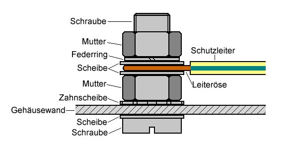 Profierder schrieb: > na wenn Schrauben auch nicht erlaubt sind, was soll man denn dann > nehmen > ? kann man irgendwelche Befestigungsschellen irgendwie anpunkten ? Schrauben sind natürlich erlaubt, sie dürfen nur von aussen nicht lösbar sei. Man kann eine Gewindeschraube ohne Kopf mit eckigem Hals (Schlossschraube) durch ein eckiges Loch stecken und innen Erdung anbringen. https://www.schraubenbude.de/schlossschrauben-din-603/schlossschrauben-din-603-verzinkt/?xoid=coa58epjfrgqfkav0go7j02ft1 oder https://www.ihk-koeln.de/upload/Handreichung_Mechatroniker_W12_39011.pdf https://www.mikrocontroller.net/attachment/336207/Selbstbau_und_Sicherheit.pdf häufig wird aber ein innen stumpf angeschweisster Gewindebolzen verendet. Es ist auch ok, eine normale Schraube (bei der es ein Problem wäre draussen zu drehen) aussen mit Erdungssymbol (Unterlegscheibe mit Aufdruck) zu kennzeichnen.