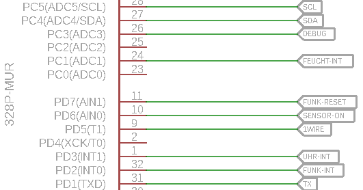 Philipp H. schrieb: > Also so wie in "Schalt-V02.png"? > > Das Signal kommt von einem Atmega238/8MHhz getaktet. (Siehe > Ausschnitt.png) Du meinst vermutlich Atmega328. Mit welcher Spannung läuft der? Wenn auch mit 3,3V kannst Du das Signal „Sensor-On“ softwaremäßig negieren und T2 und R3 weglassen. R1 kann dann auch 100k groß sein.