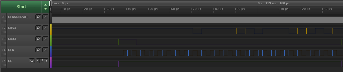 Hallo, ich habe ein Problem beim Auslesen des EEProms beim starten des Systems. Als Master wird ein FPGA eingesetzt. Versucht habe ich Delays zwischen dem ersten Lesen und dem Einschalten (bis zu 500ms). Delay vergrößert von CS zu CLK, leider auch ohne Erfolg. Ebenfalls habe ich den CS kurz gesetzt und wieder gelöscht, bevor das erste mal ausgelesen wird. Im Datenblatt finde ich auch nichts. Im Anhang sind 2 Screenshots, wo das auslesen einmal funktioniert und einmal nicht. Das EEProm will einfach keine Daten raus schicken. MISO hat einen PullUp aktiv im FPGA. Wenn das System einige Zeit läuft und ich es neu starte wird es sauber ausgelesen. 93C46B_ok - Lesen funktioniert 93C46B_fail - EEProm gibt keine Daten aus. Andere Teilnehmer sind nicht angeschlossen. 93C46B_fail1 wie 93C46B_fail nur mit Reset Zyklus. Peter
