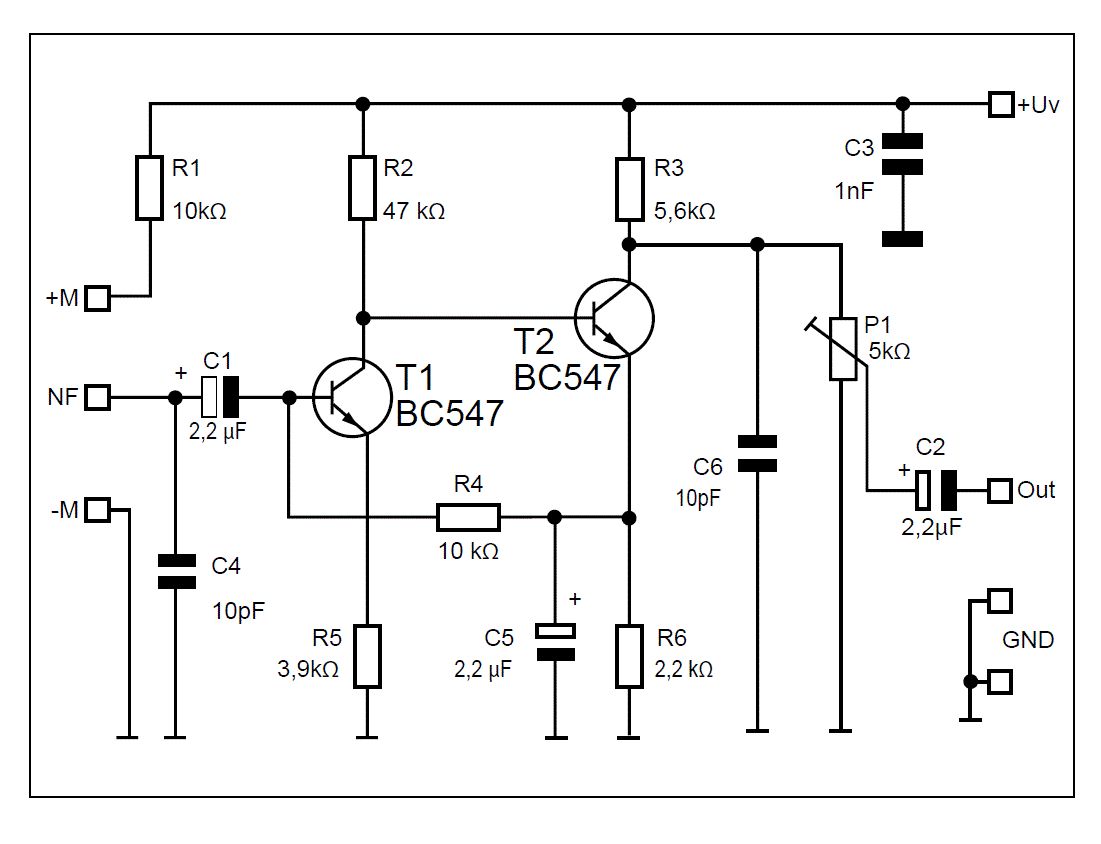 Hallo, mal eine Frage zu der 2-Stufigen Vertärkerschaltung. Wie schließt man die 2 polige Elektretkapsel an? M+ ist der Pluspol der Elektretkapsel, M- ist der Minuspol der Elektretkapsel (so vermute ich mal), aber was schließe ich den an dem NF an? Vielen Dank vorab für eine Erkärung.