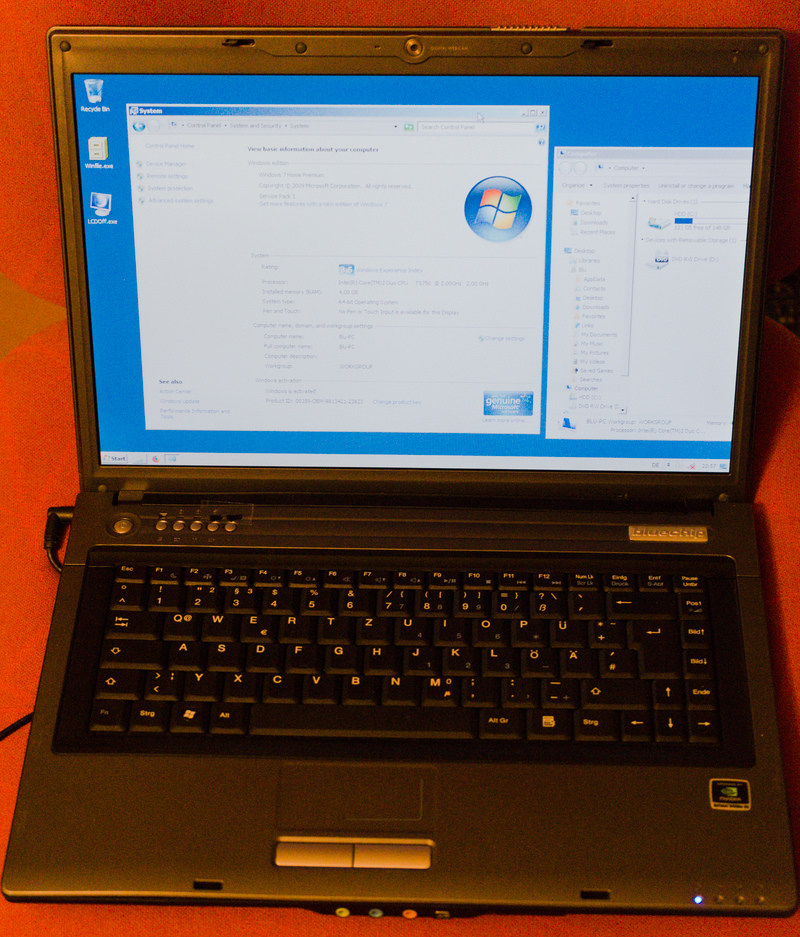 Verkaufe Laptop Bluechip Core2 Duo 2x2GHz, 4GB RAM, 160GB HDD mit Netzteil. Mattes Display. Ohne Akku! Hat ein englisches Windows 7 Home, aktiviert. Lizenzaufkleber wird mitgeliefert. Mit neuer Biosbatterie. Der Laptop funktioniert einwandfrei, WLAN und Schnittstellen siehe Bilder. Die oberen LEDs sind mit einem Klebestreifen abgedeckt da sie mir zu grell leuchten. Dieser kann problemlos entfernt werden. Der Lüfter rauscht unter CPU-Last vernehmlich. Aber für 3D-Drucker Ansteuerung o.ä. gut geeignet. VB 20 Euro + Porto. Bitte Kontakt nur mit Angabe der E-Mail-Adresse. Fragen werden gern beantwortet.
