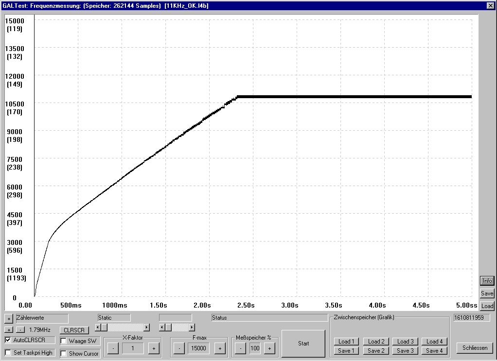 Sag ich doch :-) Da steckt schon Hirn hinter wenn man den Stepper linear beschleunigen will. Und das in Assembler mit einem 8052. Anbei eine Messung wo ein Stepper bis auf knapp 11KHz beschleunigt wird.