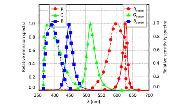 Zudem ist es wichtig, dass die Wellenlängen der zwei/drei Farben möglichst exakt überein stimmen.