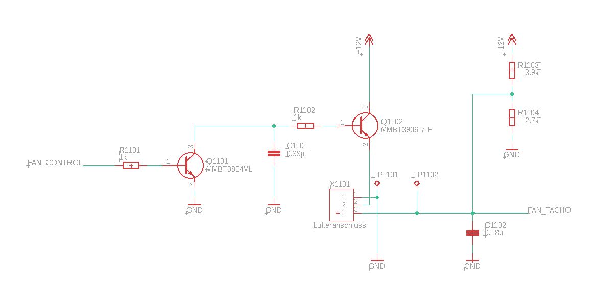 Guten Abend zusammen, ich habe eine Schaltung aufgebaut, um einen 12V Lüfter zu steuern. Könnte mir vielleicht einer sagen, ob das so funktioniert? Mein "Fan_Control" ist ein 3,3V I/O Pin eines STM32 Controllers. MfG