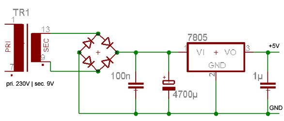 @RTX: soeinen hab ich grad net :/ @Peter: soll ich einen 1000µF Elko vor den 7805 hängen? Marcel