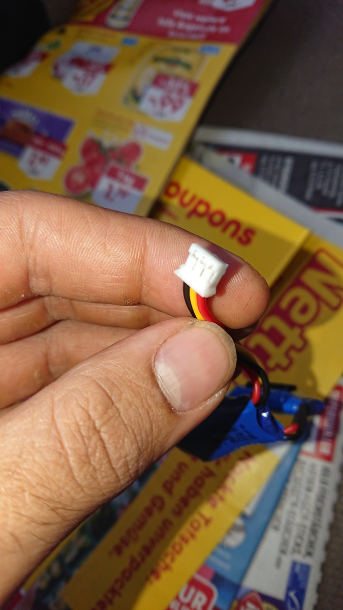 Hallo, Das ist ziemlich sicher ein JST PH Stecker. http://www.jst-mfg.com/product/detail_e.php?series=199 Von denen gibt es recht günstige kits oder fertige Kabeln. https://www.amazon.de/s?k=jst+ph&__mk_de_DE=%C3%85M%C3%85%C5%BD%C3%95%C3%91&ref=nb_sb_noss_2 Lg Lorenz