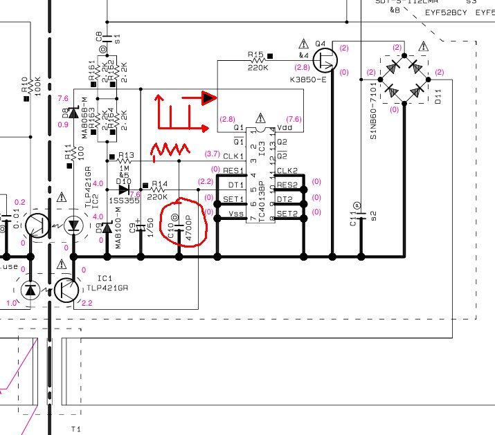 Möchte nichts weiter zum Thema beitragen außer mich zu bedanken! Der Tipp mit dem C8 hat auch meine beiden Geräte hier gerade gerettet. Ohne hätte ich das wohl nicht herausgefunden. Hätte auch nicht erwartet, dass die Folienkondensatoren kaputt gehen. 😅