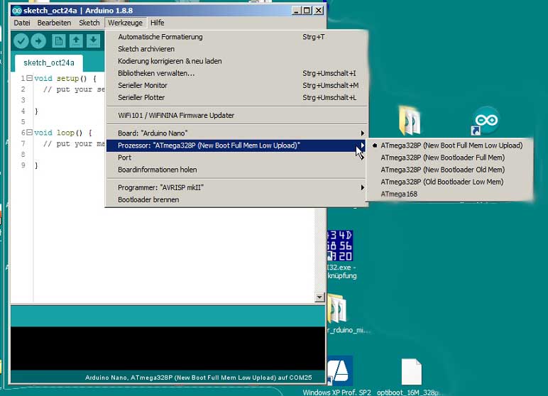 Arduino Fanboy D. schrieb: > Fest steht, dass der Nano ein Submenü hat, namens "Prozessor", da kannst > du zwischen den beiden Bootloadern wechseln oder mehr Bootloader