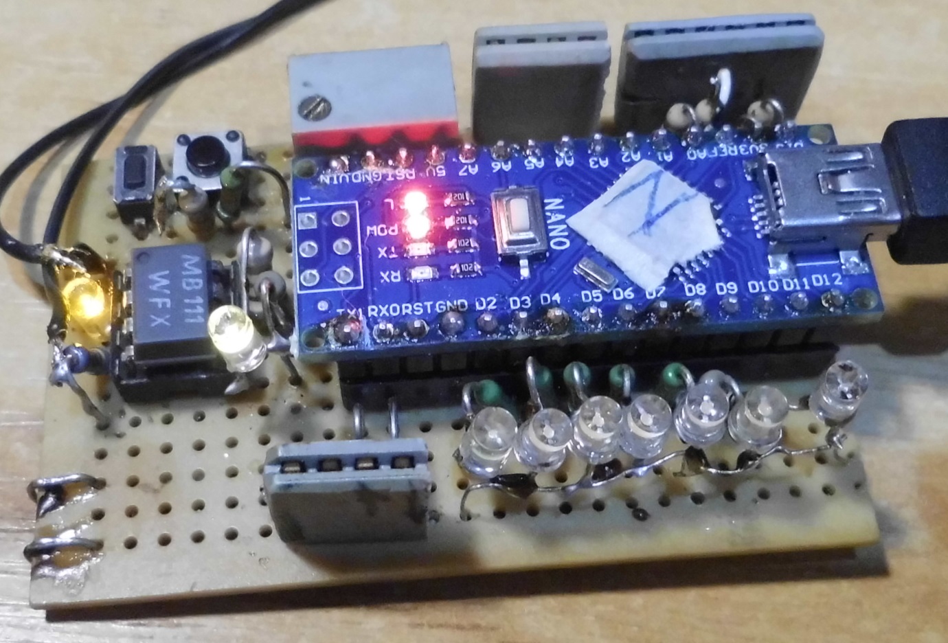 Arduino Fanboy D. schrieb: > Aber dein Nano hat den neuen Bootloader, laut deiner Aussage. > Und da ist das behoben. Durch deine Aussage das es nicht möglich ist, habe ich nochmals die Hardware kontrolliert . Im Programm konnte ich auch nicht mehr die ADR über den Monitor eingeben. Ist ja einfach,wenn die Software es nicht sein kann ,muss es die Hardware sein.;-)) War jetzt schnell gefunden,Eine kleine Brücke in der Ausgabe Buchse(4P) für Tx/RX. Die Ports Tx/Rx habe ich über 150 Ohm an die Buchse gelegt. Es hatte sich eine Widerstand von ca 300 Ohm zwischen TX und Rx ergeben. Beim leichten biegen der Leiterplatte war die Brücke weg. Wahrscheinlich hatte sich die Brücke später gebildet, denn das Teil ging ja schon einige Zeit. Übrigens nutze ich das Tei auch als DCC Decoder. Jetzt werde ich erst mal sehen ob ein I2C OLED Display an den Teil auch mit geht. Schön ist es immer wieder , das auch nicht zielführende Antworten helfen können.;-)))