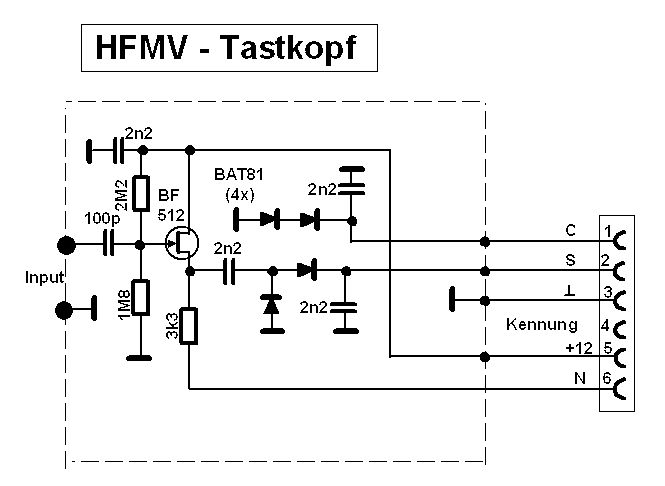 Die gezeigte Schaltung ist kein Brückengleichrichter. Aber sie funktioniert bei HF Spannungen bis zu 1mV. Weil bei so kleinen Spannungen die Temperaturabhängigkeit sehr stark ist, ist ein zweite (Dummy) Gleichrichter zur Kompensation eingebaut. Das nachgeschaltete Messgerät bildet die Differenz der beiden Gleichrichter. Der Zusammenhang der Größe der HF Spannung und der abgegebenen Gleichspannung ist stark nichtlinear. Das muss im Messgerät kompensiert werden.