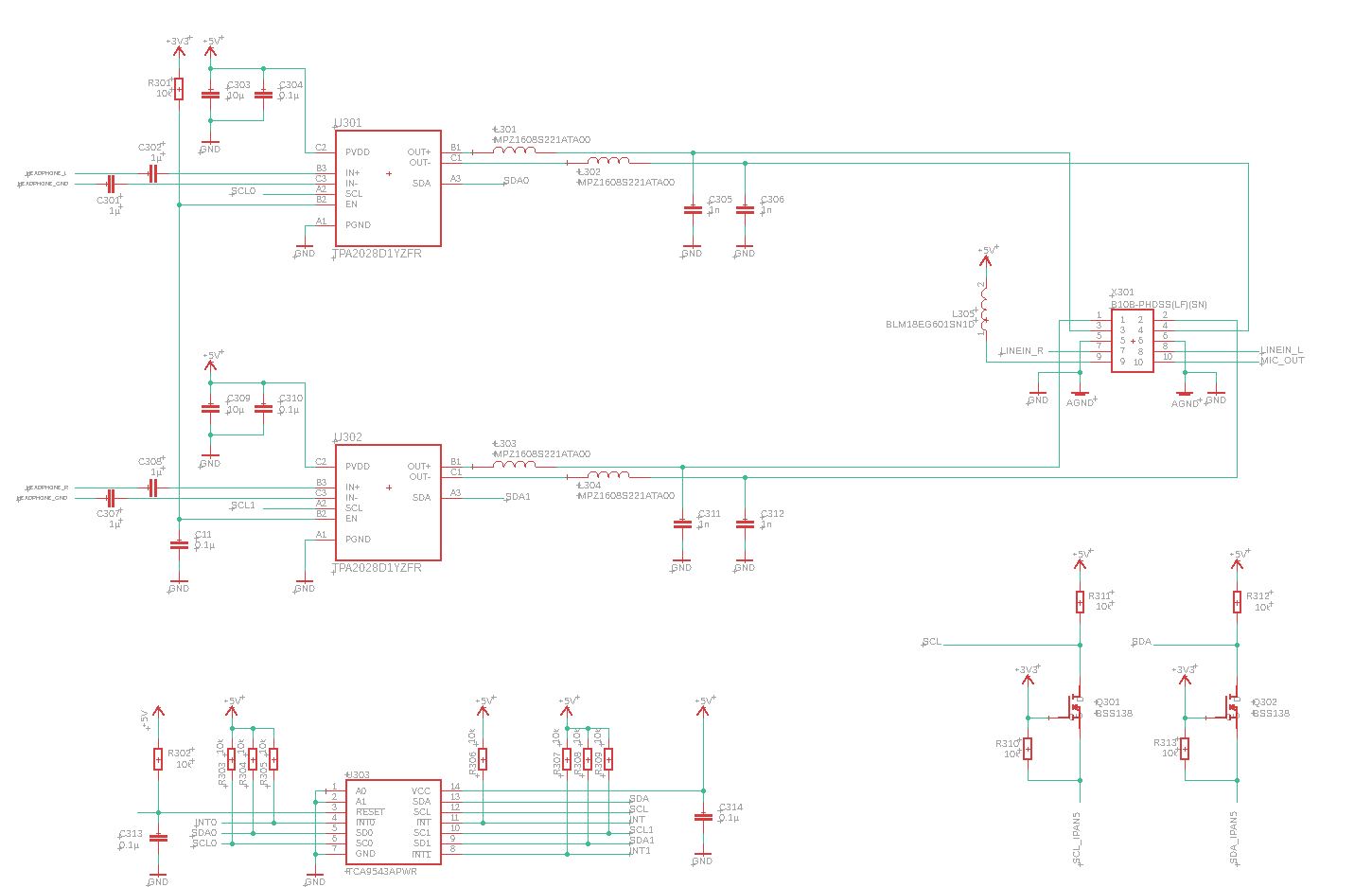 Erich H. schrieb: > ob das so passt Den teuren Exoten TCA9543 der auch noch mühsam programmiert werden muss könnte man sich sparen wenn man ein zweites I2C softwarebasiert baut, oder EN der TPA2028 einfach an Portausgänge legt statt immer einzuschalten, oder SCLK simpel mit TTL Logik durch eine Steuerleitung (PortPin) umschaltet. Wer verbaut WLCSP freiwillig den TPA2028 ausser einem Smartphonefabrikanten ?