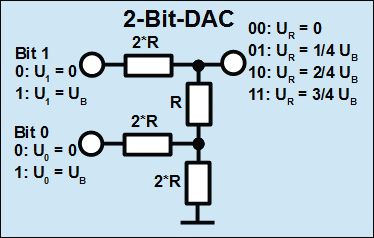Ein R2R Netzwerk kann man sehr gut mit einem Treiber wie zB einem 74xx245 ansteuern. Oder, wenn man geizig ist mit einem Parallelport einer controllers. Nachdem man begriffen hat wie's laeuft.