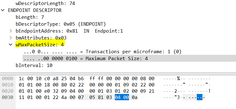 sich der STM immer mit wMaxPacketSize = 4 an, anstelle von 64.