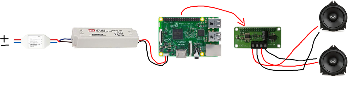 Hallo Leute, erstmal sorry für den Titel, mein Problem ist in einem Satz schwer zu beschreiben. Jedoch denke ich es ist mit einem Satz zu lösen :D Folgendes: Ich benütze auf einem Raspberry Pi Volumio. Die Boxen sind über ein Hifiberry Modul angeschlossen. Alles schön und gut. Jetzt habe ich einen smarten Schalter von Meross angeschlossen. Im Anhang ist mein Aufbau dargestellt. Das Problem ist, seit dem ich den smarten Schalter angeschlossen habe, kommen aus dem Lautsprecher manchmal, wenn der Schalter eigentlich aus ist, Töne und der Raspberry Pi wird sehr warm. Mein Lösungsansatz wäre eventuell einen Kondensator bei der Plusleitung zwischenzulöten?! Bringt das was? Danke!
