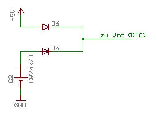 Salut, ist wahrscheinlich eine "Arduino" Frage, aber warum gibt es sog. "Battery Backup Switches", die automatisch von der PSU Spannung (z.B. 5V) auf eine Batteriespannung (z.B. 3V) umschalten, um z.B. einen RTC "am Leben" zu erhalten, sobald die Primaärspannung wegbricht - also das Gerät ausgeschaltet wird? Ich meine hier z.B. den ICL7637: https://eu.mouser.com/ProductDetail/Renesas-Intersil/ICL7673CPAZ?qs=sGAEpiMZZMsfD%252BbMpEGFJeOX5v5g90nkwtdL5vuKUz0%3D Es geht doch auch wie auf dem Bild (s.Anhang). Wo liegen die Vorteile in einem IC für > 2,-€ ggü. zwei Dioden? Merci.