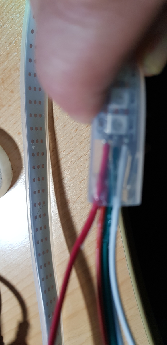 Stefan das ist der komplette 1m LED Streifen, mit beiden Anschlussseiten. Links die noch freien Anschlüsse der linken Seite,rechts die belegten Anschlüsse.