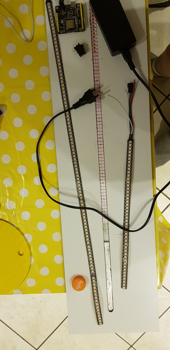 Hallo Stefan, das ist jetzt der Aufbau!. Habe mich im Netz schlau gemacht, und bin auf spezielle LED Verbinder gestoßen. Bilder folgen gleich. Habe auch ein anderes Modul genommen, bei dem sowohl der Steckanschluss für das Netzteil als auch der Steckanschluss zum PC vorhanden ist. Desweiteren habe ich den Schalter die Widerstände, den Kondensator. Das Anmelden hat jetzt geklappt, das Flashen hat geklappt, die Firmware ist aufgespielt. Jetzt warte ich noch auf Waco-Klemmen Schnellverbinder ohne Löten (12/24 V). Das Bild als solches ist vorbereitet. Habe mir eine CNC-Fräsung von einem Freund durchführen lassen. Hat perfekt geklappt. Jetzt zeiche ich penibel genau die Größe 7 mm des runden eigentlichen Leds ein. Jetzt lasse ich mir am Montag von meinem Onkel die 62 Löcherin eine 2 mm Hartholzplatte bohren, dazu habe ich bis Montag eine Bohrschablone fertig, in die ich mit einer Lochstanze von 4 mmm, im genauen Abstand von Mitte LED bis Mitte LED von 7 mm gestanzt habe. Ich möchte dich bitten, mir mit diesen Materialien einen Schaltplan zu zeichnen, damit ich alles anschließen kann,wenn ich das Zubehör komplett habe es anschließen und dann ausprobieren kann, bevor ich dann mit dem Programmieren beginnen kann. Bitte schau dir alles an und schreibe mir dann was falsch ist oder was fehlt und was du davon hältst. Bin aber jetzt erstmal auf dem Weihnachtsmarkt bei uns LG Frank