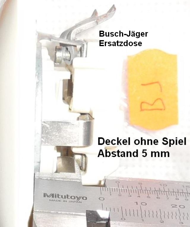 OK, alles gut Joachim B. schrieb: > und 3 verdrillte 1,5mm² bekommt man auch als Öse gebogen nicht unter die > Schraube, die ist zu kurz! Ich hatte genau zwei PE-Schrauben mit übergrossem Kopf ohne Zusatzscheiben, wo 2x2 Os (Oesen) übereinander problemlos gut+fest klemmten. Bei den Quadratscheiben hätten vier Adern neneneinander richtig fest geklemmt werden können. Vielleicht war das bei Busch-Jäger sogar so gewollt? Ich meine, wenn 2+1 ging, sicher auch 2+2 und das nicht als Fehler, sondern ein Feature - durch die Schrauben- und Quadratschraubenbreite von Entwicklern ja bewußt genauso geplant und möglicherweise sogar in den späten 1970-ern extra so beworben? Glück wärs, der Busch-Jäger-Entwickler liest das und meldet sich. Den Thread-Titel kann ich ja nicht mehr ändern - ich probiers dennoch, LG