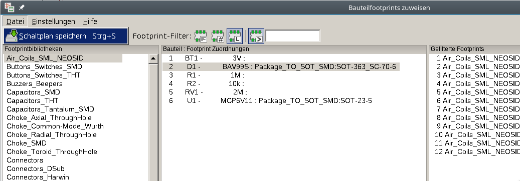 Erzeuge in Eeschema die Netzliste (Button "Netzliste erstellen") nach Punkt 4. ...