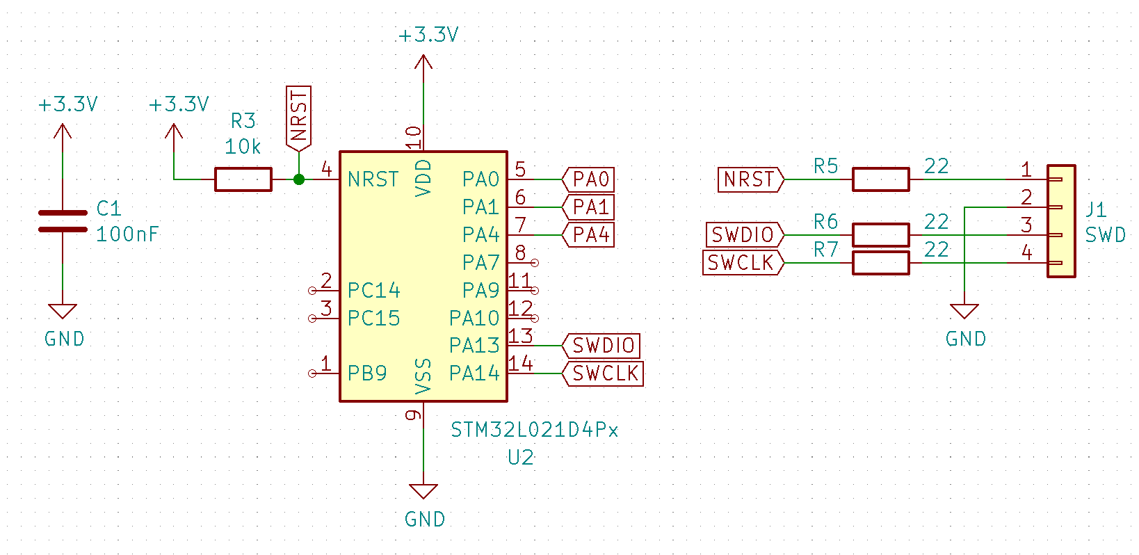Hallo, ich habe mir ein kleines Board mit einem STM32L021D4 im TSSOP14 Package erstellt. Ohne viel Schnick Schnack, kein externer Clock. GND sowie SWCLK (PA14) und SWDIO (PA13) habe ich nach außen geführt um programmieren und debuggen zu können. Programmiert werden soll mit einem ST-Link China Klon (dieser Funktioniert mit zwei anderen Customboard und einem STM32F1 und F4). Jetzt habe ich aber das Problem, dass ich einfach keine Verbindung zum Controller bekomme mit dem ST-Link Utility. Eingestellt ist Software System Reset. Der NRST Pin ist mit einem 10k Widerstand auf 3,3V gesetzt. Mit einem F1 und F4 auf einem anderen Board klappts ohne Probleme. Wo könnte mein Fehler sein? Danke