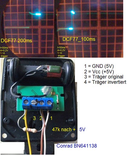Johannes schrieb: > Dabei sind mir natürlich die Drähte zur > Ferrit-Antenne abgebrochen Hi, der Kondensator gehört auch dran. (6,8 nF). Den hast Du wahrscheinlich beim Anlöten verkokelt. Oder ganz vergessen. Siehe Bild. Den 47k Pullup nach Plus auch nicht vergessen. Und gucken, was für ein Signal Du gerne haben möchtest. Invertiert oder nicht invertiert. ciao gustav