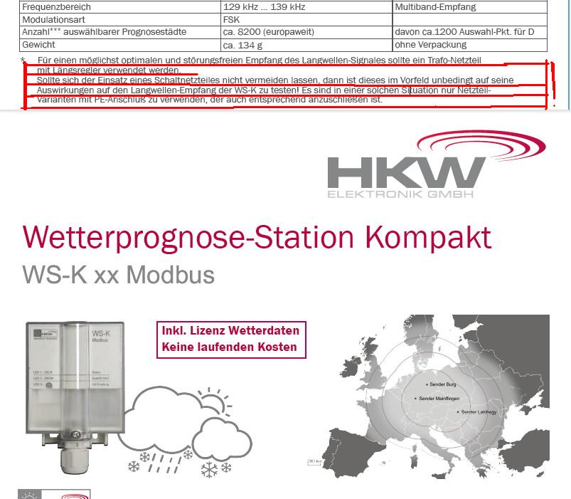 Wolfgang schrieb: > Deshalb werden solche Leitungen verdrillt. Dann sind die eingestreuten > Störungen auf beiden Adern gleich und heben sich gegenseitig auf. Hi, beim Conrad-Empfangsbaustein sind drei Adern nötig. Schon ist die Asymmetrie da. Und Abschirmung bei gestörter Umgebung wird empfohlen. Die meisten Störungen kommen vom benutzten Schalt-Netzteil. Im Bild noch eine ernstzunehmende Empfehlung des Wetterstationherstellers. ciao gustav