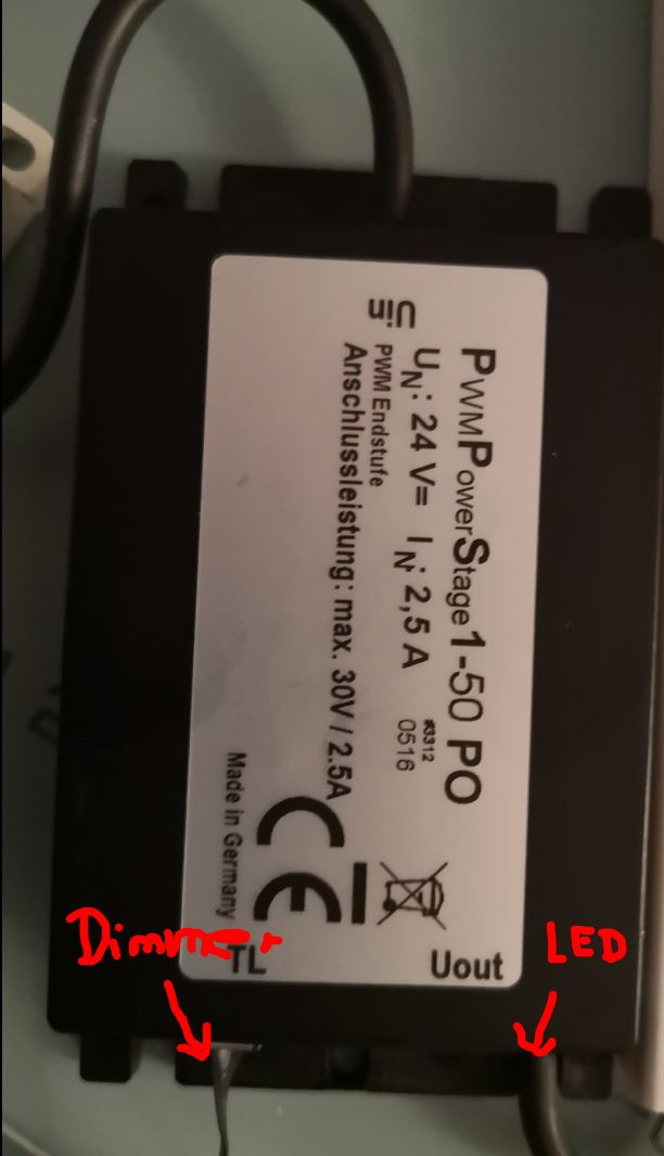Das ist richtig. Da ist noch ein Trafo von 230 auf 24V (habe das Bild auch angehängt)..... diesen Trafo kann ich besorgen. Das ist nicht das Problem. Der ist aber meinesachtens nicht kaputt, weil obwohl die LEDs nicht mehr leuchten, der LED Dimmersensor immer noch leuchtet.... Zur Erklärung: Man schaltet den Spiegel an, dann funktioniert er 2 Sek wie gewünscht und dann flackern die LEDs (beide)und dann gehen sie aus. ... nachdem die LEDs aus sind, leuchtet aber der Dimmersensor nach wie vor.