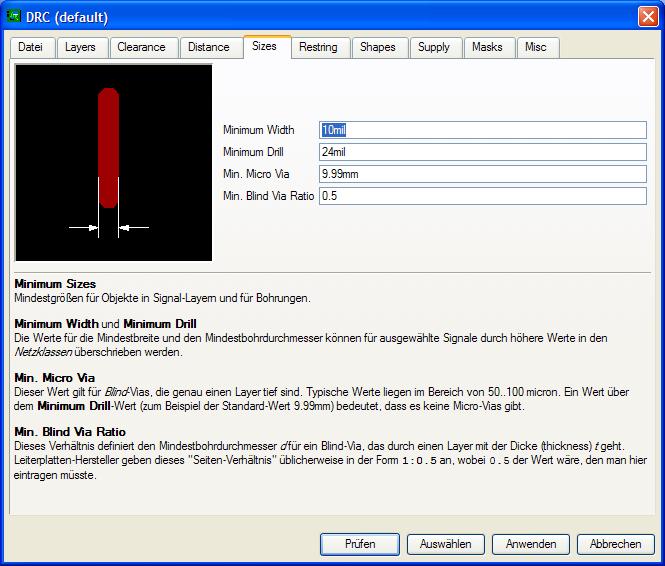 Naja, das ist ja das Problem! Ich habe in den Einstellungen bei "minimum Width" 0.2mm und alle Leiterbahnen sind 0.2mm. Doch überall Fehler, das ist ja das wunderliche daran.. Hab auch schon probiert, bei Minumum Width was kleinere einzugeben,wie z.B.: 0.15mm , Auch das hat nicht geholfen. Gibts da sonst noch wo eine Einstellung?!