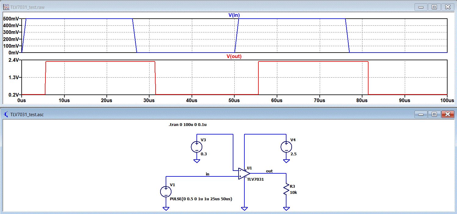 Hallo! Bin mal wieder am Experimentieren und wollte mal den Komparator TLV7031 von TI in LTspice ausprobieren. Funktioniert aber nicht wirklich. Habe dafür als Basis einen 'normalen' OPAmp genommen, weil ich keinen simplen Komparator in LTspice gefunden habe. Vielleicht ist das der Fehler. Die TLV7031.LIB ist original von TI. Wäre dankbar für ein paar Tips ;-) Bernd