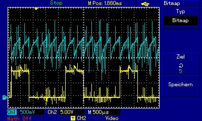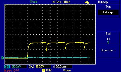 Wie gesagt, ich sehe nur einen ganz kurzen Impuls, kann den leider nicht einfangen, der ist aber von Gate auf Source bei 10V (wenn ich schnell gucke). Der Motor zuckt ja auch kurz. C11 merk ich mir, sollte aber mit dem Bild nichts zu tun haben?