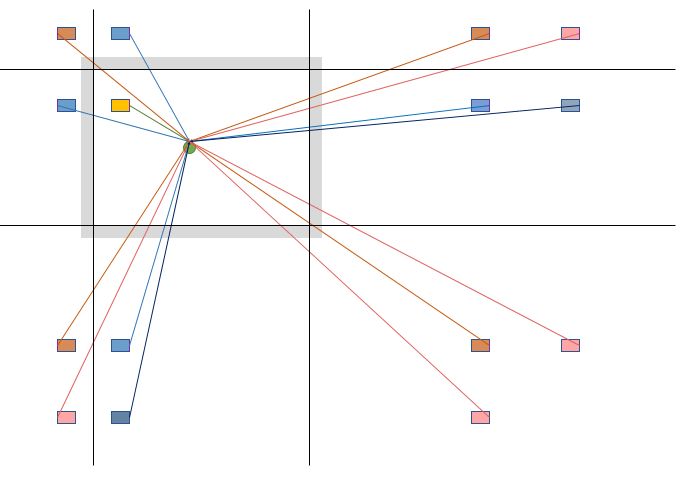 Soweit dachte ich mir das auch. Hier ein Szenario für 3 Spiegelungen an zwei Wänden. So müsste es eigentlich stimmen. Da die Ladung mit R*R abnimmt, kann man sicher rasch abbrechen, denke ich mir. Wie ist das im zweidimensionalen? Kann ich diesen Konstrukt einfach nach oben und unten klappen?