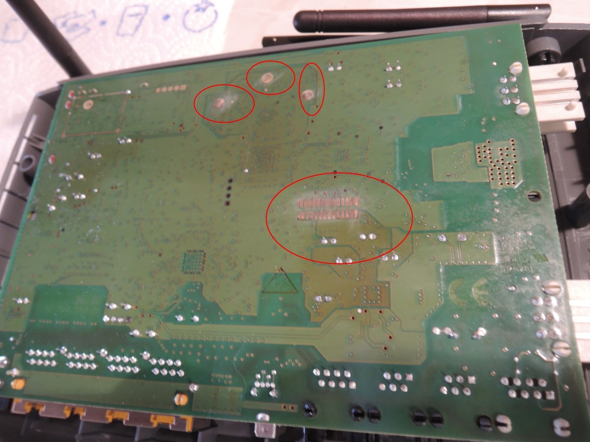 Hallo, vor 3 Jahren wurde mir eine FB 7270 von AVM ausgetauscht, die Ausgetauschte Box habe ich getestet und gleich wieder als Reserve in der Originalschachtel abgestellt. Jetzt dachte ich, ich nehme diese als Repeater und siehe da, als ich sie ansteckte, leuchtet keine LED mehr. Das Netzteil ist in Ordnung, liefert die 12V . Hat da jemand eine Idee? Wird ein Router Defekt beim liegen? Da AVM mir das Gerät nicht mehr tauscht, habe ich es aufgemacht, gemacht habe ich noch nichts daran. Anbei 2 Bilder. Die rot Markierungen sind deshalb da mir vorkommt das da jemand schon daran "gearbeitet" hat Wäre toll wenn mir da jemand weiterhelfen könnte, bin kein Freund von der Wegwerfgesellschaft....:-(