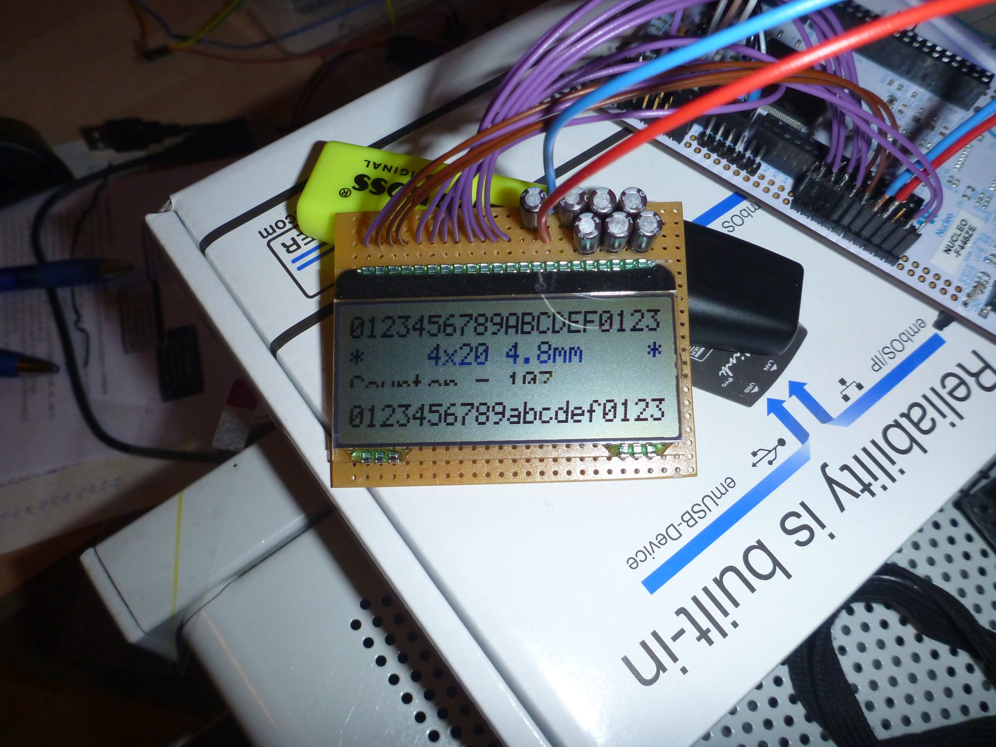 Hi, in der Firmware des Displays oder vom Nucleo? Die "Lib" ist selbstgeschrieben in Anlehnug an dieapp-note auf lcd-module.de. Waitstates und Abfrage von "Busy" sind drin. Außerdem funzt ja die 1., 2. und 4. Zeile. Grüße Runout