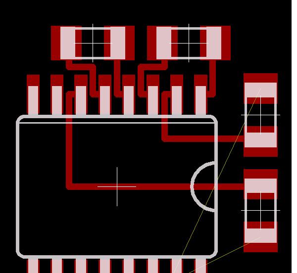 Hallo, ich versuche gerade einen max232 in SMD ausführung auf meiner Platine zu routen. Allerdings bekomme ich die Leitungen nicht direkt an den Pin (Siehe Anhang, es geht immer nur rechts oder links daneben oder halt total schräg). In den Designregeln habe ich auch schon rumprobiert, das ganze hat aber bisher noch nichts gebracht. Danke :) Gruss Micha