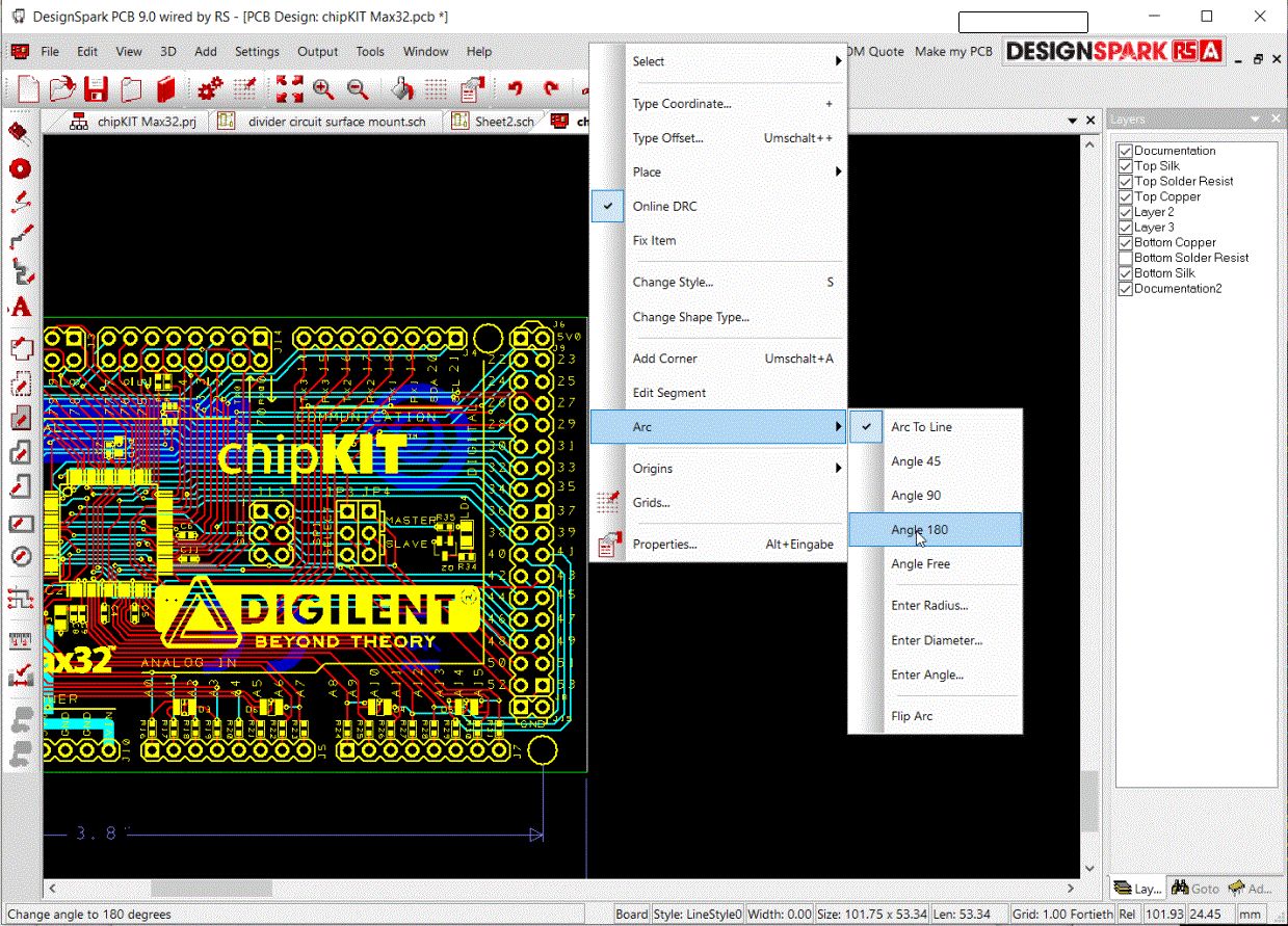 Hi, ich möchte eine Leiterplatte/Board machen, das auf einer Seite rund ist. Wie zeichnet man Halbkreise in diesem Programm? (8.1.1) Danke JJ