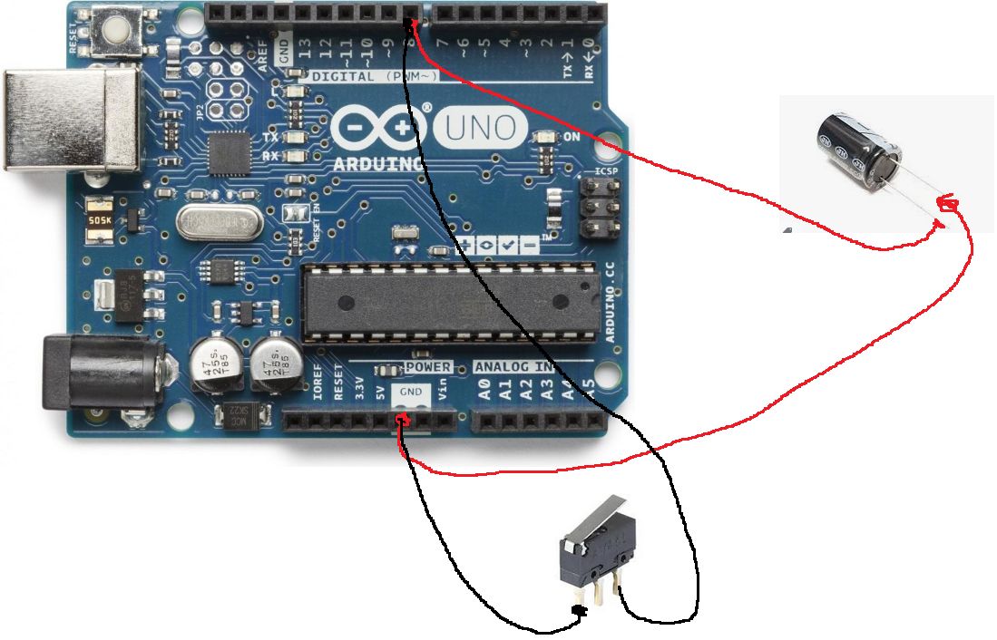 Meine Erfahrung ist, dass nur der Kondensator alleine nicht ausreichend ist. Ich hatte an meiner Selbstbau CNC auch ein Problem mit den Endschaltern. Verwendet habe ich ein RAMPS Board, auf welchem dieser Kondensator am Endstop Eingang bereits vorhanden ist. Trotzdem fing sich der Arduino über den Eingang Störungen ein, sobald die Spindel zum fräßen anfing, welche zum Absturz und zum Reset des Arduinos führten. Erst eine weitere Filterung der Endstop Eingänge wie hier beschrieben hat das Problem gelöst: https://www.digikey.com/en/articles/techzone/2012/apr/protecting-inputs-in-digital-electronics